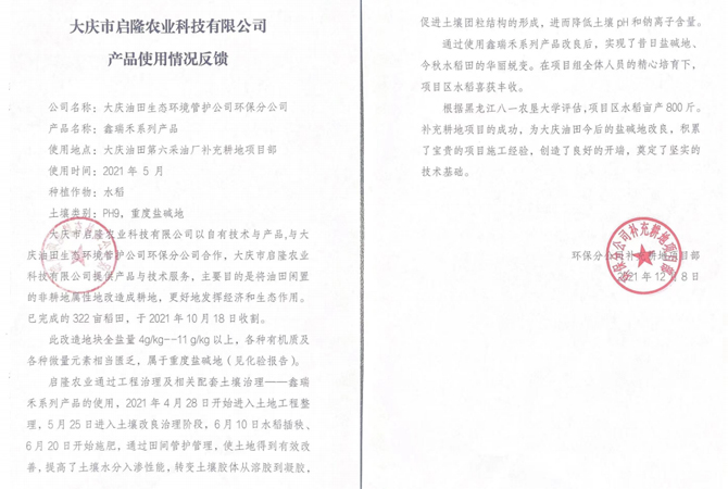 與多所高校、研究院、各大種業(yè)企業(yè)合作種植改良鹽堿地水稻。在黑龍江、吉林、內(nèi)蒙古等地有多處示范基地。在新疆等地區(qū)種植草木,環(huán)境綠化等工程。幾年來(lái),啟隆人大力弘揚(yáng)“創(chuàng)新、堅(jiān)韌、拼搏、開(kāi)拓”的企業(yè)精神,在研發(fā)上勇攀高峰。大慶啟隆 的企業(yè)宗旨是“誠(chéng)信于鹽堿地的朋友,服務(wù)于鹽堿地的朋友”,努力為鹽堿地改良做出積極的貢獻(xiàn)。